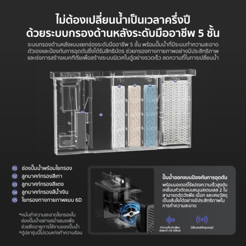 - แจ้งเตือนเมื่อถึงเวลาเปลี่ยนวัสดุกรอง