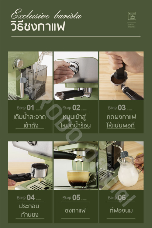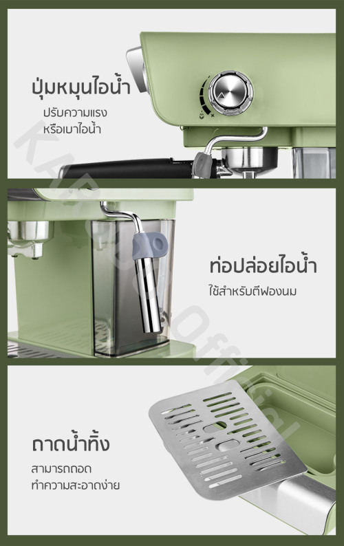 ระบบไอน้ำ ทำฟองนมมีลูกบิดปรับแรงดันเพื่อเพิ่มความละเอียด ให้ฟองนมหนา นุ่ม เนียน ได้สัมผัสดีเยี่ยม