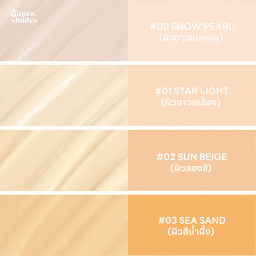 Supershades Gentle Matte All Day Perfect Fit Skin Cushion 13g #01 Star Light นวัตกรรมใหม่ล่าสุดจาก Supershades เนื้อคุชชั่นบางเบาแต่ให้การปกปิดอย่างมีประสิทธิภาพ กันน้ำและกันเหงื่อได้ดี เหมาะสำหรับอากาศร้อนและชื้น ช่วยให้ผิวแมทเนียนสวยตลอดวัน ไม่มันเยิ้ม ไม่อุดตัน อ่อนโยนต่อผิว มาพร้อม SPF50 PA++ ปกป้องผิวจากแสงแดดได้อย่างมั่นใจ ใช้ง่าย พกพาสะดวก ให้คุณมีผิวสวยทุกที่ทุกเวลา