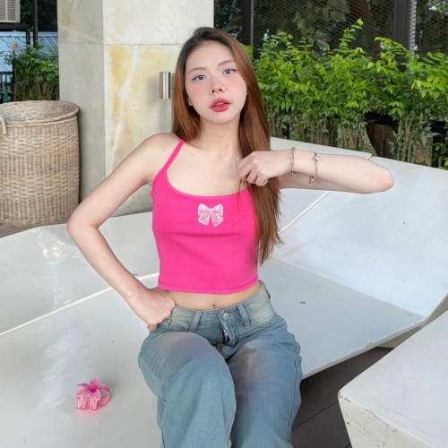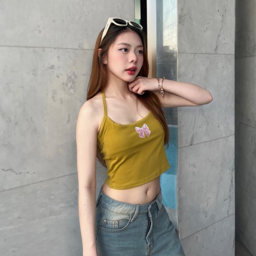 เสื้อคล้องคอ tank top สกรีนโบว์น่ารัก 🍒 ผ้ายืดยูนิ ผ้านิ่มใส่สบายยืดเยอะ ทรงสวย ใส่เที่ยวทะเล พร้อมส่ง รุ่น คล้องคอมุตา