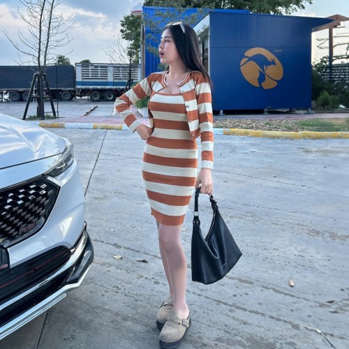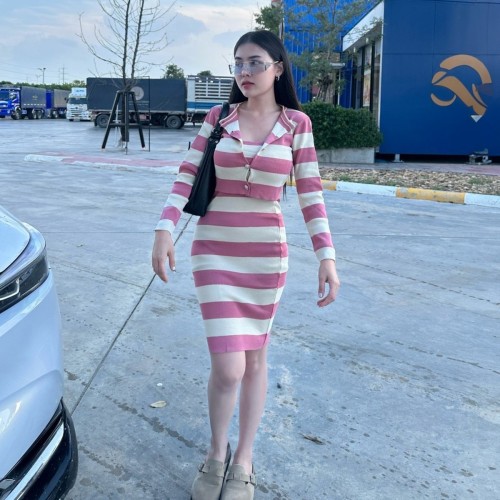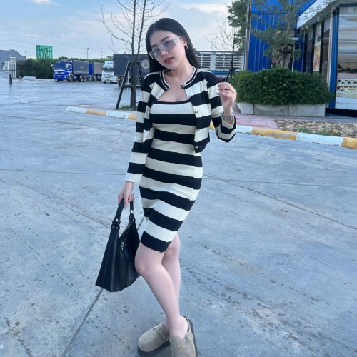 หม่ำๆงานนี้หวานไม่ไหวมินิเดรส งานชุดเซ็ทแพ็คคู่ลายริ้วคาดสลับสีแบบเก๋ๆเป็นงานชุดเดรสสายเดี่ยวแพ็คมาพร้อมมาพร้อมกับเสื้อคลุมแขนยาวกระดุมผ่าหน้าแกะได้ งานนี้น่ารักมาก ใส่ได้ตลอดทุกช่วงฤดูเลย เป็นงานเนื้อผ้านุ่ม ไม่หนา เป็นขนาดฟรีไซส์