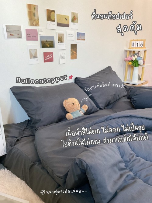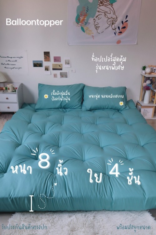 Topper ท็อปเปอร์สีพื้น พร้อมส่ง ความหนา 8 นิ้ว ใยขนห่านเทียมหนาพิเศษ 4 ชั้น ขนห่านเทียม หนานุ่ม