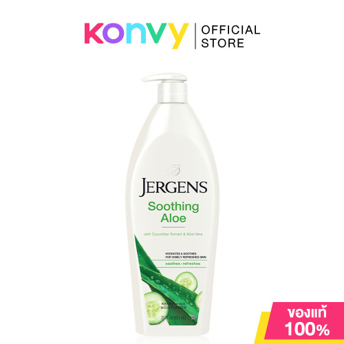 Jergens Soothing Aloe Refreshing Moisturizer 621ml โลชั่นบำรุงผิวกาย สูตรซึมซาบเร็ว ผสานเทคโนโลยีเพื่อผิวดูสว่างใส ไฮดราลูเซนซ์ พร้อมส่วนผสม Cucumber Extract และ Aloe Vera ช่วยปลอบประโลมผิวที่แห้งกร้านดูแลความชุ่มชื้นผิว เพื่อผิวดูสดชื่นมีชีวิตชีวา
