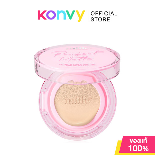 Mille Perfect Matte Longwear Cushion 14g #01 Light คุชชั่นเบลอผิวสูตรกันน้ำ กันเหงื่อ ช่วยให้เมคอัพติดทนตลอดวันมากยิ่งขึ้นพร้อมทั้งกันแดด SPF 50+ PA+++ ช่วยให้ปกป้องผิวจากแสงแดดได้อย่างมีประสิทธิภาพพร้อมทั้งปกป้องผิวจากแสงสีฟ้า และมลภาวะต่างๆ เพื่อผิวแพ้ง่าย และผิวที่มีแนวโน้มเป็นสิวง่ายให้ผิวดูสุขภาพดีและเปล่งประกายทุกครั้งที่ใช้ ปกป้องผิวขั้นสุดแบบไร้ที่ติด้วยความรู้สึกไร้น้ำหนักด้วยเทคโนโลยี Air Weigh