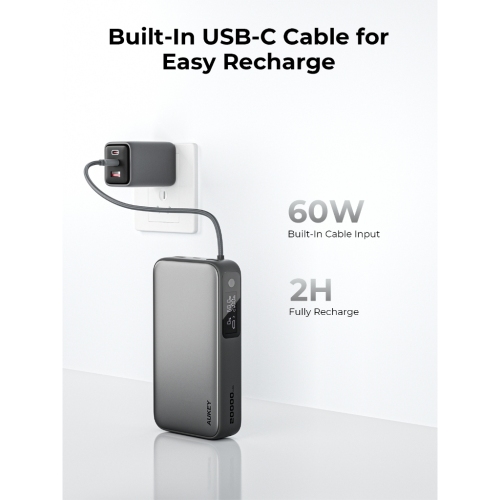 - 60W Fast Recharging via Built-In Cable
