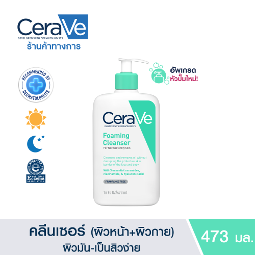 "เซราวี โฟมมิ่ง คลีนเซอร์ ผลิตภัณฑ์ทำความสะอาดผิวหน้าและผิวกาย สูตรสำหรับผิวมัน ผิวผสม ผิวที่มีแนวโน้มเป็นสิวง่ายทำความสะอาดและขจัดความมันส่วนเกินต้นเหตุของการเกิดสิว โดยไม่รบกวนปราการปกป้องผิว ส่วนผสมสำคัญได้แก่ เซราไมด์ที่จำเป็นสามชนิด เสริมเกราะปกป้องผิวแข็งแรง ไฮยาลูโรนิคแอซิด เพื่อผิวชุ่มชื้น และไนอาซินาไมด์ เพื่อลดเลือนรอยแดงจากสิวสูตรปราศจากสบู่ น้ำหอม สูตรไม่ก่อให้เกิดการอุดตัน (Non Comedogenic) และสูตรไฮโปอัลเลอจีนิคผลิตภัณฑ์ผ่านการทดสอบบนผิวที่บอบบางระคายเคืองง่าย ภายใต้การควบคุมดูแลโดยแพทย์ผู้เชี่ยวชาญทางด้านผิวหนัง และพัฒนาวิจัยค้นคว้าร่วมกับแพทย์ผิวหนัง"