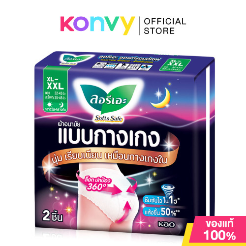LAURIER ผ้าอนามัยแบบกางเกง Soft & Safe Pants Size XL-XXL 2pcs ผ้าอนามัยแบบกางเกง ไซส์ XL-XXL สัมผัสนุ่ม ขอบเอวบางเฉียบ เรียบเนียน ใส่สบายกระชับยืดหยุ่นกับสรีระ ซึมซับไว ป้องกันการรั่วซึมรอบด้าน และระบายอากาศดีเยี่ยม ไม่อับชื้น ให้ความรู้สึกแห้งสบาย ด้วยเทคโนโลยี Leak Lock 360 องศา ช่วยปกป้องทุกการเคลื่อนไหว มั่นใจแม้วันมามาก