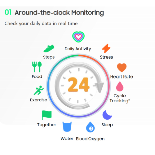 เซนเซอร์ Accelerometer, Gyro, Optical Heart Rate, Barometer, Light Sensor, SpO2