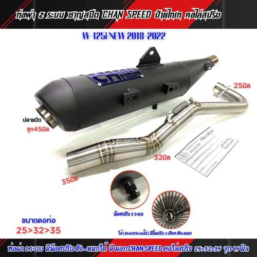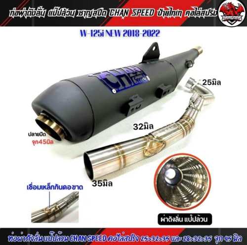ท่อผ่าดัง/ผ่าหมก/ผ่าดังลั่น/ผ่า2ระบบ ชาญสปีด W-125i LED 2018-2021คอไล่สปริง 25-35และ28-35 จุก32-45 มิล ผ่าดังนุ่ม ใส้แป็ป+ตะแกรง/ผ่าหมก ตะแกรงล้วน ผ่าดัง125i2018/คอ25 One
