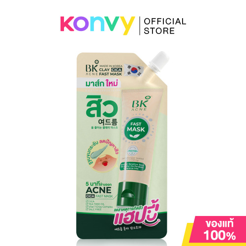 BK Acne Clay Cica Fast Mask 7g มาสก์สิวในตำนานสูตรใหม่จากประเทศเกาหลี เสริมด้วย Vital 7 Enzy Complex นวัตกรรม Enzyme Treatment Technology ด้วยสารสกัดที่ปลูกบนเกาะเจจูที่ได้รับการขึ้นทะเบียนเป็นมรดกโลก โดย Unesco ช่วยให้รูขุมขนแลดูกระชับ ลดความมันบนใบหน้า ช่วยลดการสะสมของแบคทีเรียซึ่งเป็นสาเหตุของการเกิดสิว ทำให้ผิวแลดูเรียบเนียนกระจ่างใสดุจสาวเกาหลี