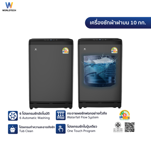 Worldtech เครื่องซักผ้าฝาบน ขนาด 10KG รุ่น WT-MB100-620_Grey