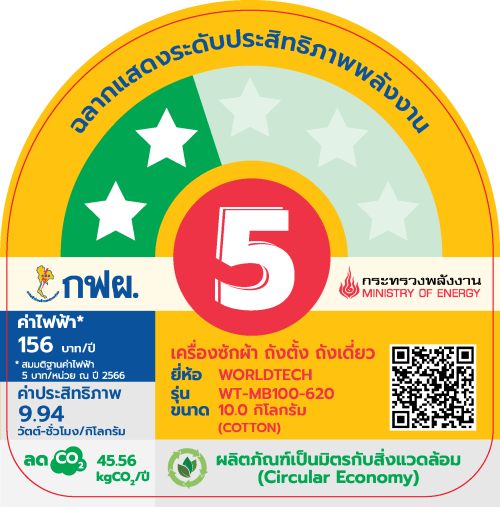 ✅ เสียงรบกวน: ระดับเสียงขณะซัก 62 เดซิเบล และปั่น 72 เดซิเบล