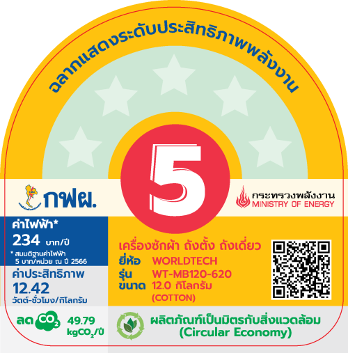 ✅ ระดับน้ำมาตรฐาน: ใช้น้ำเพียง 16 ลิตรต่อการซัก