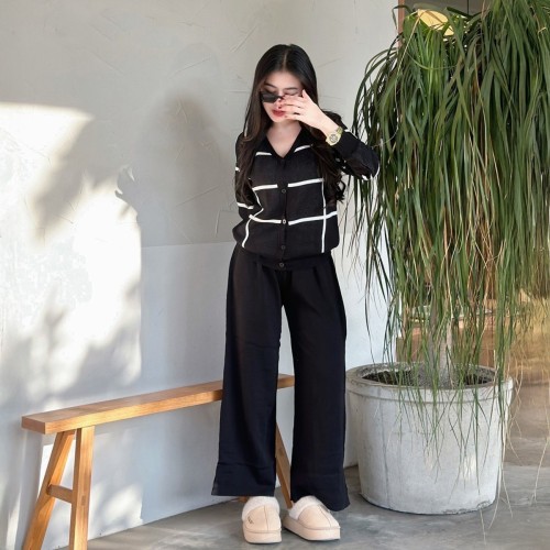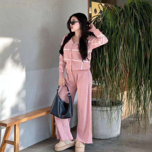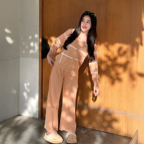Come with me. งานตอบโจทย์ทุกความต้องการของสาวกสาวแฟชั่น จัดเซ็ตแพ็คคู่มาให้แล้ว งานเสื้อทรงคอวีแขนยาวกระดุมผ่าหน้าแพ็มากับกางเกงขายาว เป็นงานผ้าไหมพรม เนื้อผ้านุ่ม ไม่หนา เป็นขนาดฟรีไซส์ สาวอวบใส่ได้