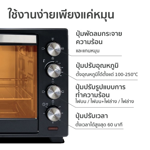✅ เตาอบไฟฟ้าระบบหมุนเวียนกระจายความร้อน ช่วยให้อาหารสุกทั่วถึงกันเท่ากันทุกด้าน