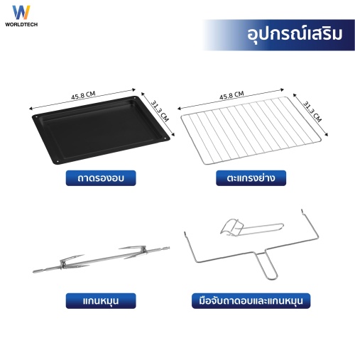 ✅ Worldtech เตาอบไฟฟ้า เตาอบตั้งโต๊ะ ตู้อบ ขนาด 60 ลิตร