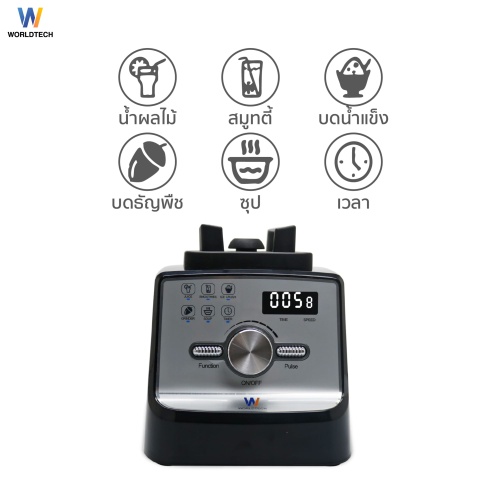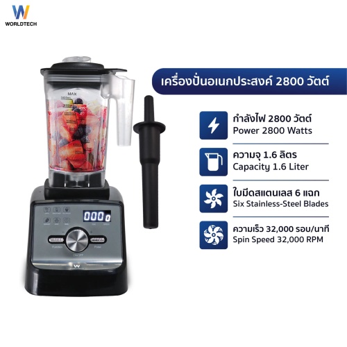 ✅ Worldtech เครื่องปั่นอเนกประสงค์ เครื่องปั่นน้ำผลไม้ เครื่องปั่นสมูทตี้เชิงพาณิชย์ได้ กำลังไฟ 2800 วัตต์ (Upgraded Version) ขนาด 1.6 ลิตร