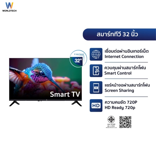 [พร้อมส่ง] Worldtech ทีวี 32 นิ้ว LED TV Analog HD Ready รับประกัน 1 ปีเต็ม Analog 32