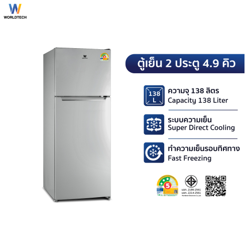 ✅ Worldtech ตู้เย็น 2 ประตู ขนาด 4.9 คิว/ 138 ลิตร