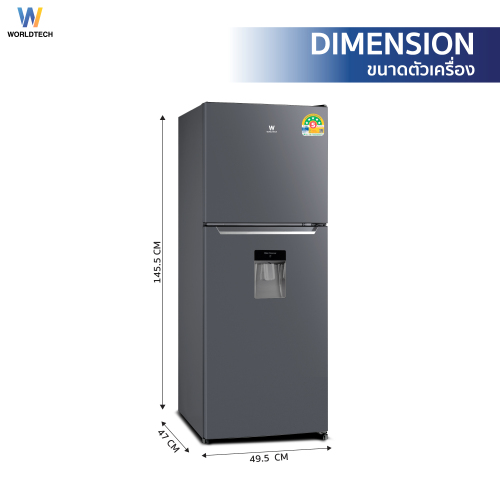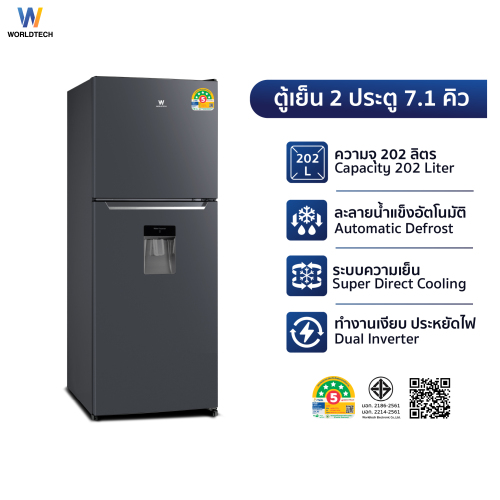 ✅ Worldtech ตู้เย็น 2 ประตู ขนาด 7.1 คิว/ 202 ลิตร