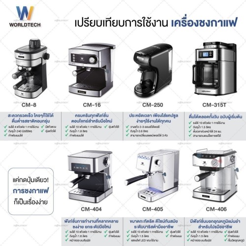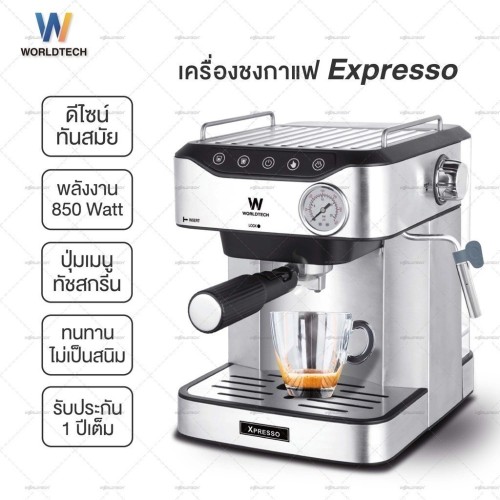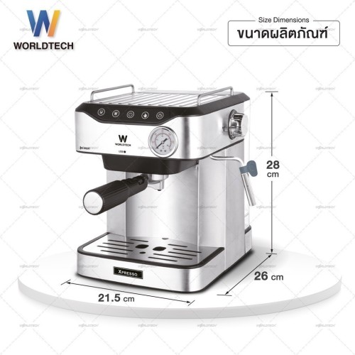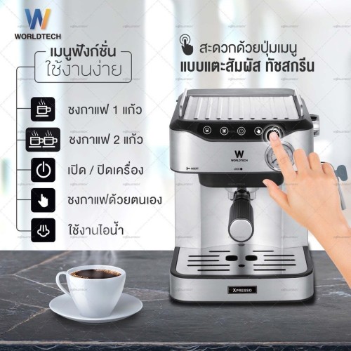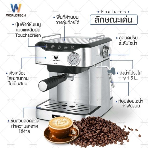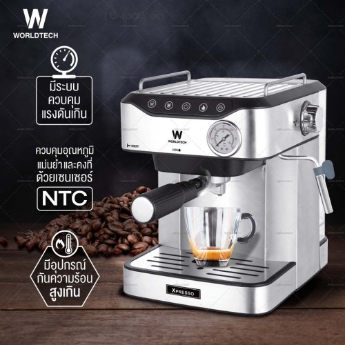 ✅ Worldtech เครื่องชงกาแฟอัตโนมัติ เครื่องทำกาแฟ Espresso ปรับความเข้มข้นของกาแฟได้ สกัดด้วยแรงดันสูง