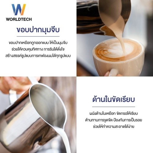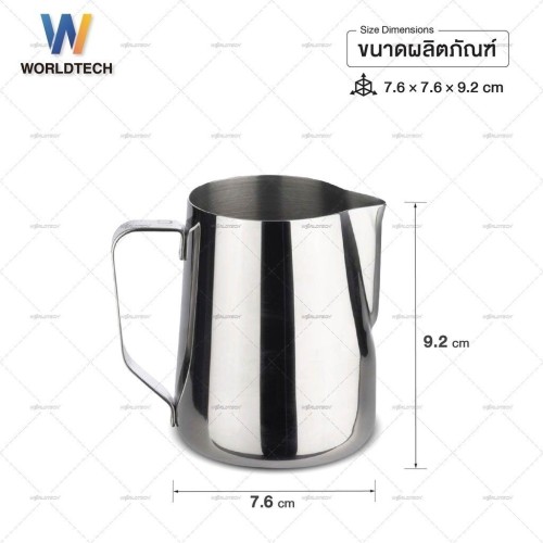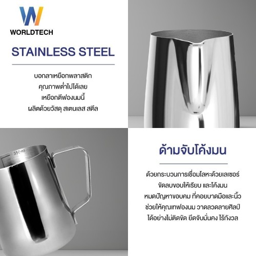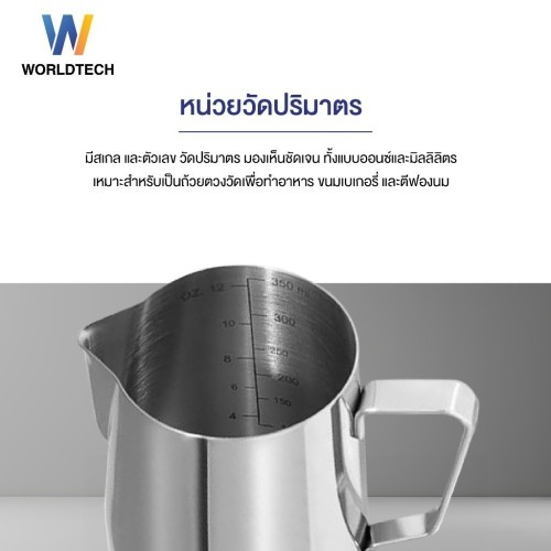 ✅ Worldtech เหยือกตีฟองนมสแตนเลส โถตีฟองนม ขนาด 350 ml.
