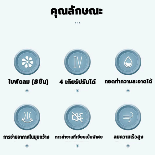 สวิงพัดลม: สวิงขึ้นและลง 90° สวิงซ้ายและขวา 70°