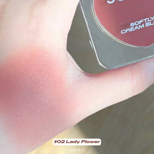 JOLIE U Softly Cream Blush 5g #02 Lady Flower บลัชออนเนื้อครีม เม็ดสีแน่นชัด เกลี่ยง่าย กันน้ำ กันเหงื่อ ติดทนนาน พร้อมผสานสารสกัดบำรุงผิวหลากหลายชนิด มอบพวงแก้มสีสวยสดใส ดูเป็นธรรมชาติ เข้าได้กับทุกลุคทุกสไตล์