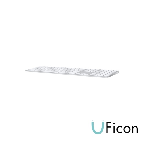 Magic Keyboard พร้อม Touch ID และปุ่มตัวเลข มอบประสบการณ์ในการพิมพ์ที่ทั้งสะดวกสบายและแม่นยำจนรู้สึกได้ มาในเลย์เอาท์ที่ยาวขึ้น พร้อมด้วยปุ่มควบคุมสำหรับการทำงานกับเอกสารเพื่อการเลื่อนอย่างรวดเร็ว และปุ่มลูกศรขนาดมาตรฐานที่เหมาะสำหรับการเล่นเกม ส่วนปุ่มตัวเลขก็เหมาะสำหรับสเปรดชีตและแอปพลิเคชันด้านการเงินอีกด้วย นอกจากนี้ยังมาในรูปแบบไร้สาย พร้อมด้วยแบตเตอรี่ชนิดชาร์จซ้ำได้ที่ชาร์จครั้งเดียวก็สามารถใช้งานคีย์บอร์ดได้นานถึงประมาณหนึ่งเดือนหรือมากกว่า1 แถมยังจับคู่กับ Mac ของคุณโดยอัตโนมัติเพื่อให้คุณเริ่มใช้งานได้ทันที อีกทั้งยังมาพร้อมสาย USB-C เป็น Lightning แบบถักที่ให้คุณจับคู่และชาร์จโดยการเชื่อมต่อกับพอร์ต USB-C บน Mac