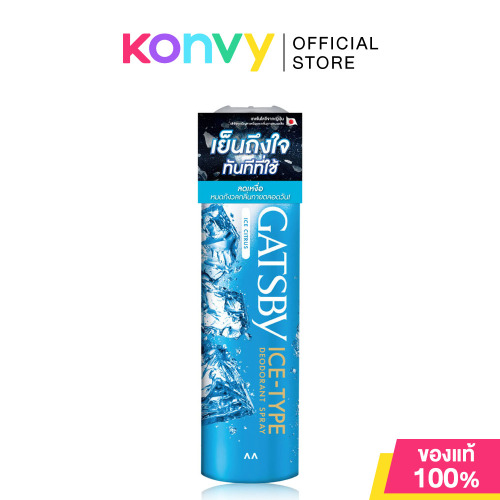 GATSBY Ice-Type Deodorant Spray Ice Citrus 216ml สเปรย์ระงับกลิ่นกาย กลิ่นไอซ์ ซิตรัส หอมเย็น สะอาดสดชื่น มีส่วนผสมจากเมนทอล ช่วยระงับกลิ่นกาย และลดการสะสมของแบคทีเรีย ไม่ก่อให้เกิดคราบขาว เพิ่มความมั่นใจในทุกสถานการณ์
