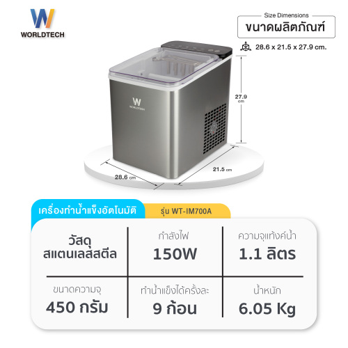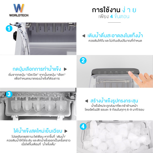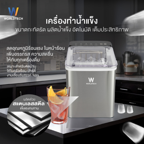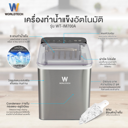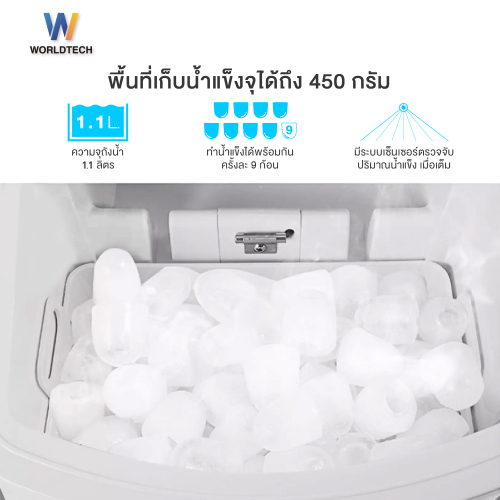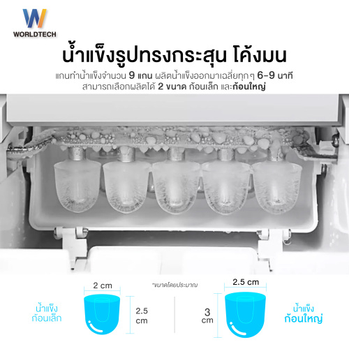 ✅ Worldtech เครื่องทำน้ำแข็ง เครื่องทำน้ำแข็งอัตโนมัติ เลือกผลิตน้ำแข็งได้ 2 ขนาด ทั้งไซส์เล็กและไซส์ใหญ่ + แถมฟรีที่ตัก