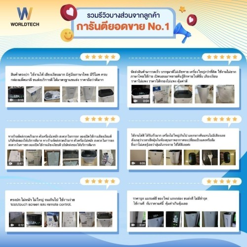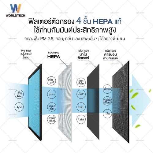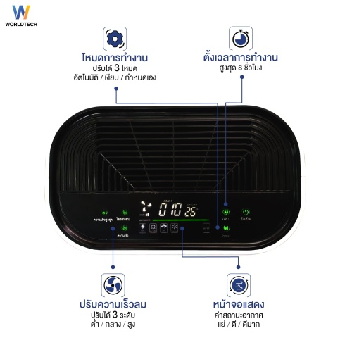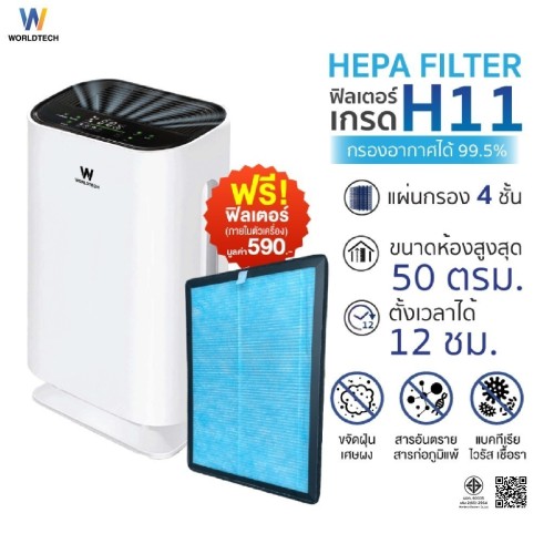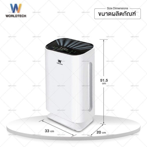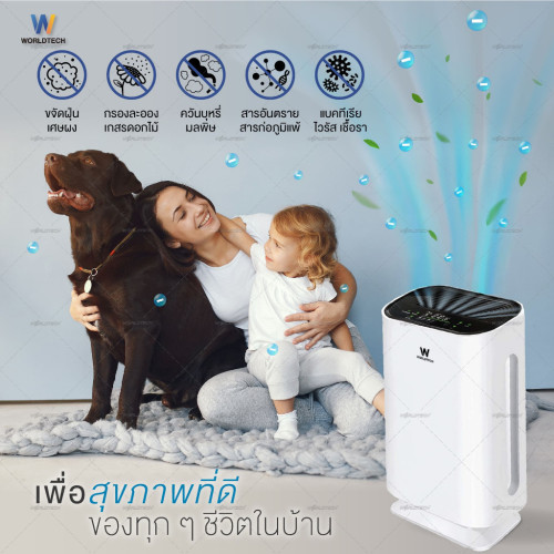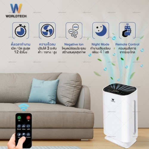 ✅ Worldtech เครื่องฟอกอากาศประจุลบ Air Purifier สำหรับห้องขนาด 40-50 ตารางเมตร