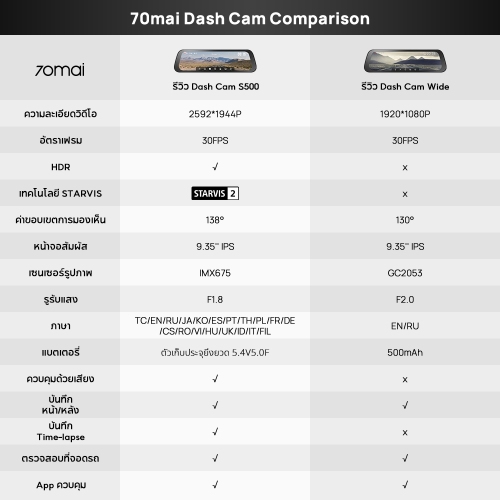 -กล้องติดรถยนต์ 70mai รุ่น S500 design ทรงกระจก และกล้องหลัง RC13