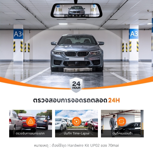 -รองรับการใช้งาน 24H Parking Surveillance (ต้องใช้คู่กับสายต่อตรง 70mai Hardwire Kit UP02)