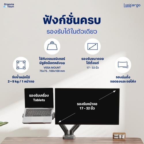 [เซ็ตสุดคุ้ม] Lunio Ergo Monitor Arm Cybot แขนจับจอ ขาตั้งจอคอม มาพร้อม แท่นวางโน็ตบุ๊ค แท่นวางแลปท็อป Lunio Ergo Cypad