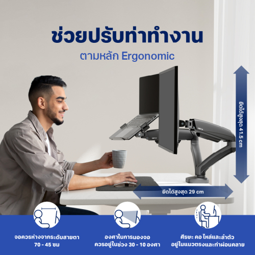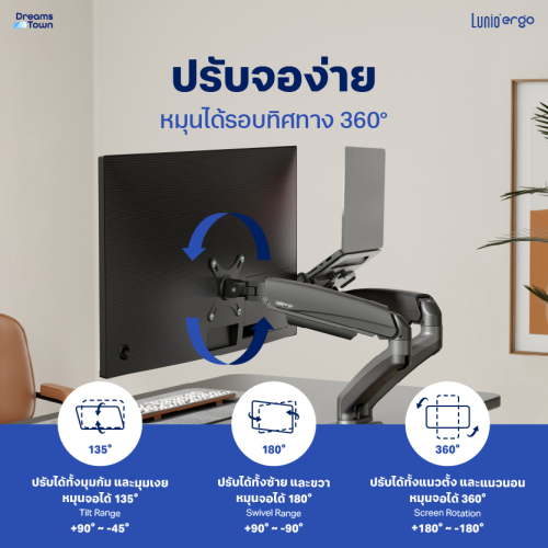 Lunio Ergo Monitor Arm Cybot แขนจับจอ ขาตั้งจอคอม ปรับองศาจอการทำงานได้360องศา ลดความเสี่ยงจากการปวดคอ บ่า ไหล่ พร้อมทั้งช่วยปรับท่านั่งให้ถูกสรีรศาตร์