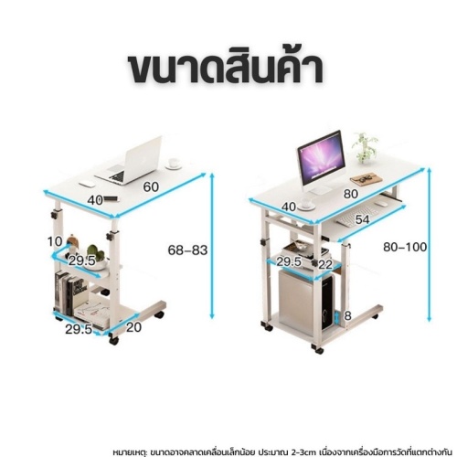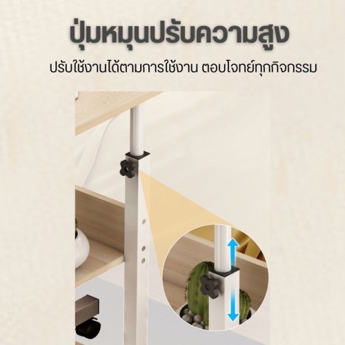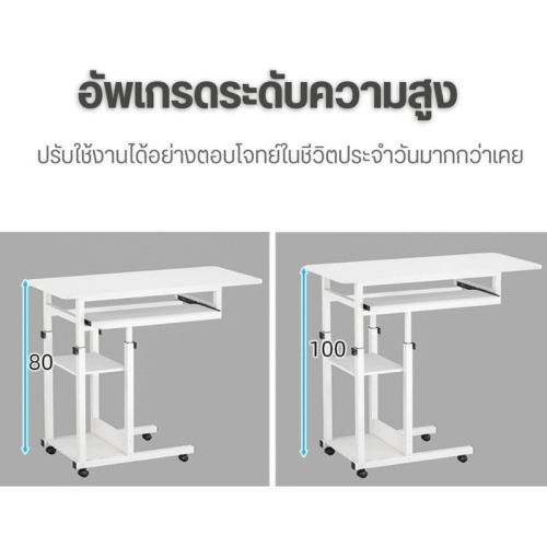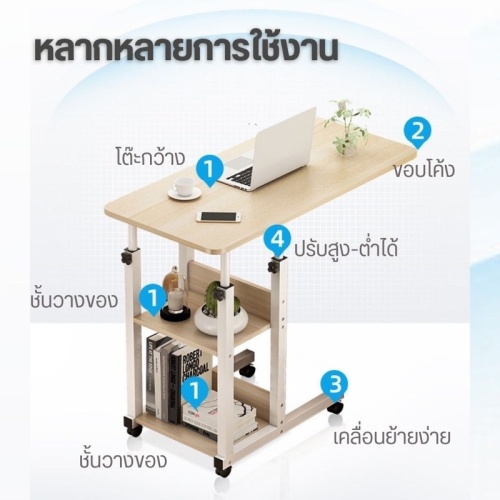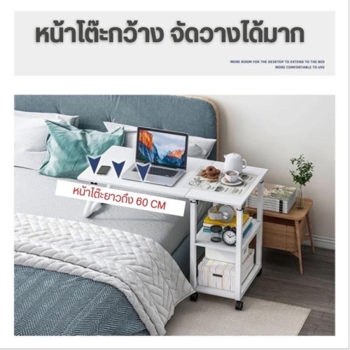 โต๊ะคอมพิวเตอร์โน้ตบุ๊กข้างเตียง สำหรับนั่งทำงาน ทำการบ้าน อ่านหนังสือ รับประทานอาหาร หรือวางของ มีล้อทั้ง 4 มุม ทำให้เคลื่อนย้ายง่าย เลื่อนใช้ได้สะดวกมากยิ่งขึ้น