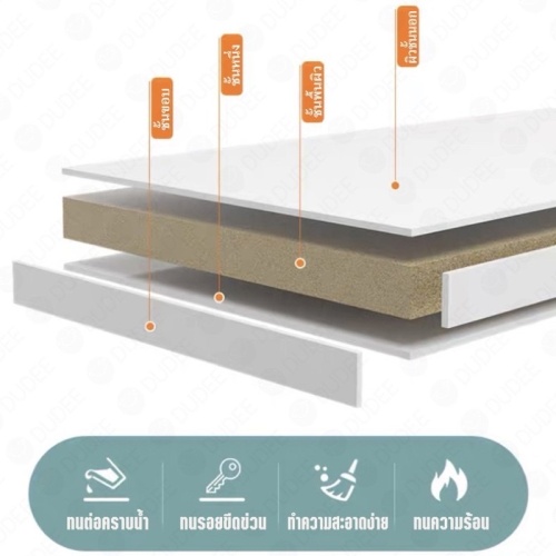 • วัสดุท็อปโต๊ะ : ทำจาก ไม้อัด สามารถเช็ดทำความสะอาดได้ง่าย