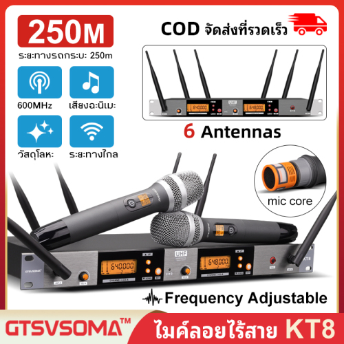 GTSVSOMA แท้ KT8 ไมค์ ลอย ไร้ สาย UHF ไมโครโฟน 6antennas ไมล์ไร้สาย 250M Frequency adjustable ไมค์ลอย VM500 ไมโครโฟนไร้สาย Karaoke ไมค์ร้องเพลง Stage performance ไมค์ลอยไร้สายแท้ ไมค์คาราโอเกะ ไมค์ไลฟ์สด ไมค์อัดเสียง ไมค์ลอยอย่างดี เยอรมนีนำเข้า One/GTSVSOMA™KM10