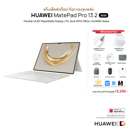 **เฉพาะรุ่น HUAWEI MatePad Pro 13.2 PaperMatte Edition เท่านั้นที่มีจอภาพFlexeble OLED Fullview และรุ่น HUAWEI MatePad Pro ขนาด 13.2 นิ้วจะมีจอภาพFlexeble OLED Fullview