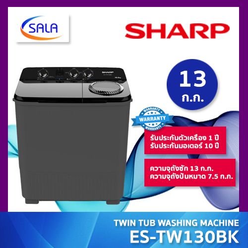 SHARP เครื่องซักผ้าถังคู่ รุ่น ES-TW130BK ขนาดซัก 13 โล ปั่น 7.5 โล ประหยัดไฟ 5 ดาว รับประกันมอเตอร์ถึง 10 ปี