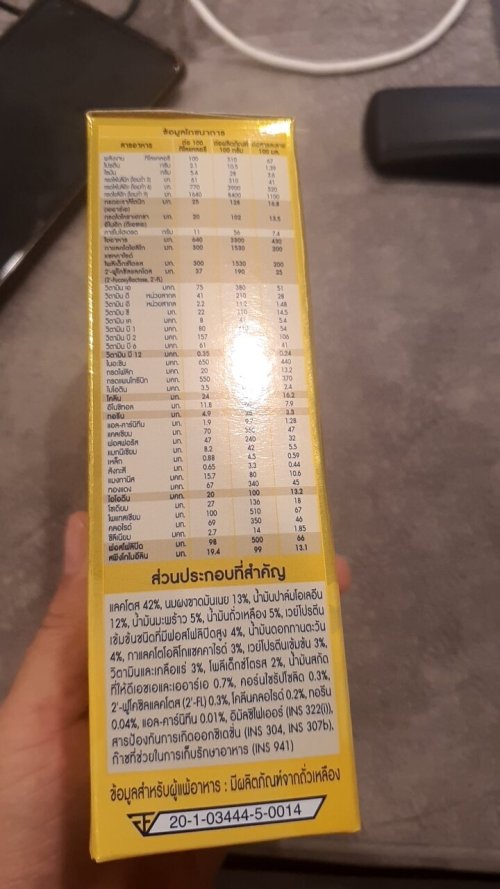 - มีดีเอชเอ 17 มก. เออาร์เอ 34 มก. ต่อ 100 กิโลแคลอรี