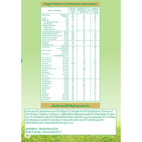 • ดีเอชเอ (DHA) 57.4 มก.ต่อ 100 กรัมและ เออาร์เอ (ARA) 59 มก.ต่อ 100กรัม