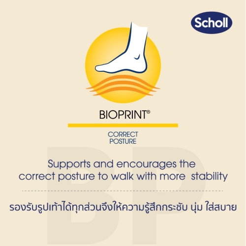 • เทคโนโลยี Bioprint นวัตกรรมที่ออกแบบให้รองรับทุกสรีระเท้าและรูปเท้าทุกส่วนทั้ง นิ้วเท้า อุ้งเท้า และ ส้นเท้า จึงให้ความรู้สึกกระชับ นุ่มใส่สบาย