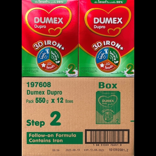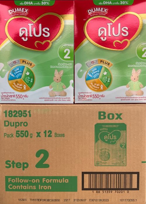 [ขายยกลัง-12กล่อง] โฉมใหม่ นมผง ดูโปร สูตร 2 550 ก. ขายยกลัง Dumex Dupro 3D IRON+ 550 g ดูโปรสูตร2 As the Picture