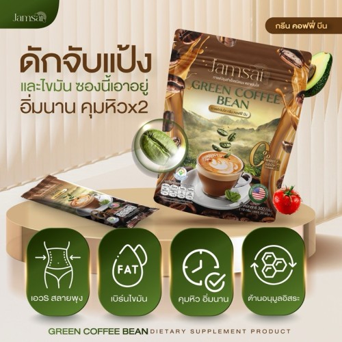 กรีน คอฟฟี่ บีน กาแฟปรุงสำเร็จชนิดผง หอม อร่อย กาแฟเมล็ดเขียวนำเข้าจากประเทศอเมริกา ช่วยลดระดับโคเลสเตอรอล ลดระดับน้ำตาลในเลือด เผาผลาญผลังงานและไขมัน ให้หุ่นสวย เบาหวาน ความดัน ผู้สูงอายุสามารถทานได้