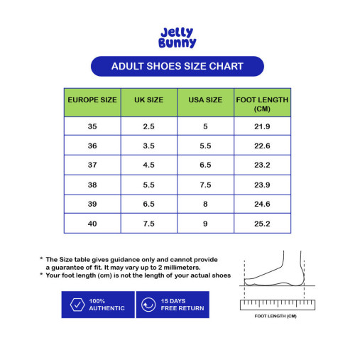 • รองเท้าแตะดีไซน์สะดุดตา โดดเด่นด้วยดีเทลระยิบระยับแวววาวของวัสดุสุดพิเศษที่ถูกนำมาใช้กับการออกแบบ ไอเทมดีไซน์เก๋ไก๋ที่จะช่วยเผยเสน่ห์ที่ซ่อนตัวในตัวของสาวเจลลีบันนีทุกคนให้โดดเด่น มาพร้อมรายละเอียดแบบสวม หัวรองเท้าสี่เหลี่ยม สายรองเท้าประดับลูกปัดมุกประดับบริเวณสายรองเท้าและพื้นรองเท้าพิมพ์โลโก้ ผลิตจากวัสดุ PVC คุณภาพสูง Material: พีวีซี| Dimension: ส้นรองเท้าสูง 1 ซ.ม.