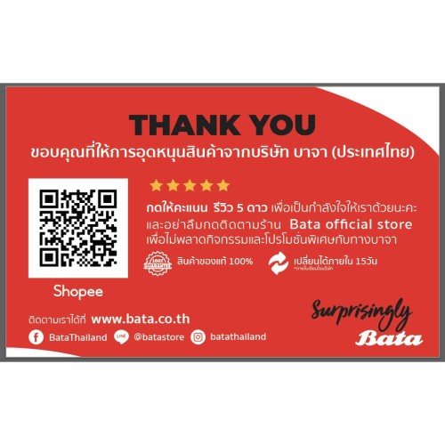 Bata เป็นแบรนด์รองเท้าที่มีชื่อเสียงซึ่งก่อตั้งขึ้นในปี พ.ศ. 2437 โดย Tomas Bata ในฐานะที่เป็นแบรนด์รองเท้าและเครื่องประดับแฟชั่นระดับโลกที่เชื่อมั่นในการจัดหาผลิตภัณฑ์ที่มีคุณภาพดีที่จะตอบสนองลูกค้า ปัจจุบันมีสำนักงานหลายแห่งทั่วโลกโดยมีสำนักงานอยู่ใน 70 ประเทศ มีประสบการณ์ด้านรองเท้ามากว่า 120 ปี และอยู่คู่คนไทยเป็นเวลากว่า 90 ปี เราได้คัดสรรรองเท้าที่มีคุณภาพ พร้อมดีไซน์ที่ทันสมัย มีให้เลือกหลากหลายประเภททั้งชาย-หญิงและเด็ก ไม่ว่าจะเป็นรองเท้าหนังคัทชู รองเท้าผ้าใบ รองเท้าลำลอง รองเท้าส้นสูง รองเท้านักเรียนไปจนถึงรองเท้าแตะ เพื่อการสวมใส่ในทุกโอกาส ตอบโจทย์ในทุกกิจกรรมและทุกช่วงวัย