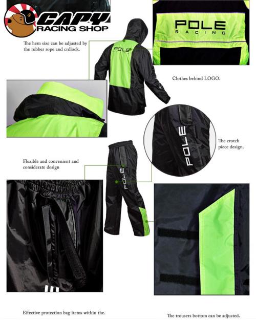 ชุดกันฝน เสื้อกันฝน ชุดกันฝนมอเตอร์ไซค์ ชุดกันฝนแบบหนา เสื้อกันฝนมอเตอรไซค์ POLE RACING , POLE AR801 ทุกขนาด เสื้อและกางเกง ส่งไว สีเขียว สีแดง สีแดง 3XL