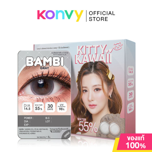 Kitty Kawaii Plus Contact Lens Bambi Gray [1 Pair] #-2.00 คอนแทคเลนส์แบบรายเดือน โทนสีเทาหม่น ตัดขอบสีน้ำตาลละมุนๆ ปรับสีตาให้ดูหวานอย่างเป็นธรรมชาติ วัสดุ Soft Lens เลนส์ถนอมสายตา บางเบา ใส่สบายตา 19 ชม. พร้อมปกป้องดวงตาจากรังสี UVA และ UVB